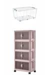 4 Katlı Portatif Katlanabilir Dolap Depolama Dolabı Pembe Dolap 50 Litre Saklama Kutusu BEZLİ SET