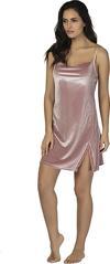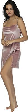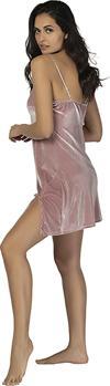 Ayarlanabilir ince askılı, yandan yırtmaçlı ince kadife gecelik