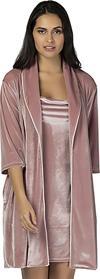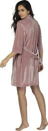 Yarım kol, belden kemer bağlamalı, diz üstü ince kadife sabahlık