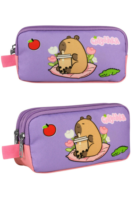 Capybara İlkokul Kalem Kutusu – Mor & Pembe 20 × 10 × 6