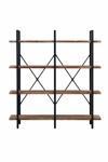 - Ahşap Masif Ağaç 4 Katlı Duble Doğal Rustik Raf Kitaplık Metal İskeletli Aksesuar Rafı