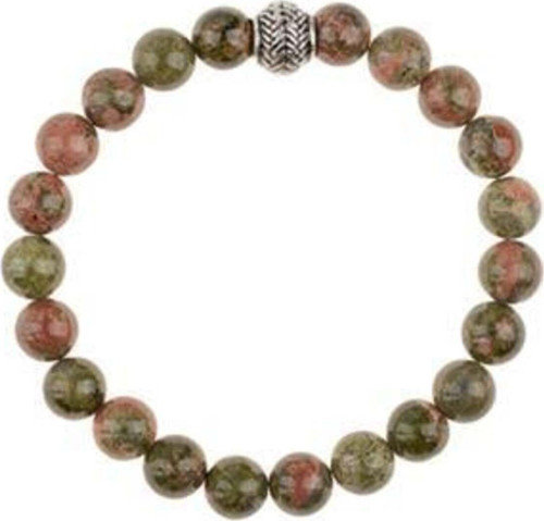 Unakit Doğal Taş Bileklik (8mm Küre Kesim) Faydaları: Unakit görünüm itibari ile yeşil içerisinde pembe ve kırmızı renk parçacıkları bulunduran bir taştır. Unakit, Pembe Feldspar (yada kırmızı ortoklaz), Yeşil Epidot ve Kuvars taşının bir arada olduğu bir kayaç türüdür. "Hoşgörü taşı" olarak da bilinir.