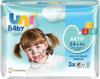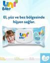 Uni Baby Aktif Islak Mendil, içeriğindeki bebek cildine uyumlu temizleyiciler sayesinde ihtiyaç olan tüm anlarda hızlı ve kolay hijyen sağlar.