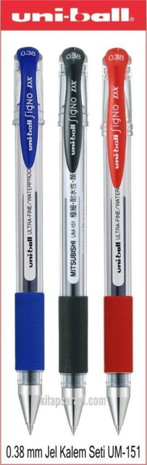 Uniball signo dx 0.38 mm jel kalem seti 3 adet um-151 ürün özellikleri 0.25 mm çizgi kalınlığı 0.38 mm bilye büyüklüğü eli rahatsız etmeyen, kullanıcının yazım konforunu artıran yumuşak tutaç. Yazılarınızı, imzalarınız ve değerli belgelerinizi tüm etkenlere karşı dayanıklı uni süper mürekkep geliştirilen yeni jel mürekkebi ile daha uzun ömürlü canlı gövde rengi seçenekleri çocukların yutma riskine karşı nefes borusunun tıkanmasını önleyen kapak sistemi.