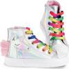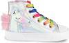 Yüksek konçlu, hologram yüzeyli, yanı fermuarlı, kolay giyilip çıkarılan, bir yanı unicorn aplikeli, her kıyafetin altına uyan sneakers.