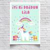 Reysa Tasarım Unicorn Temalı Doğum Günü Afişi 50X70 cm
