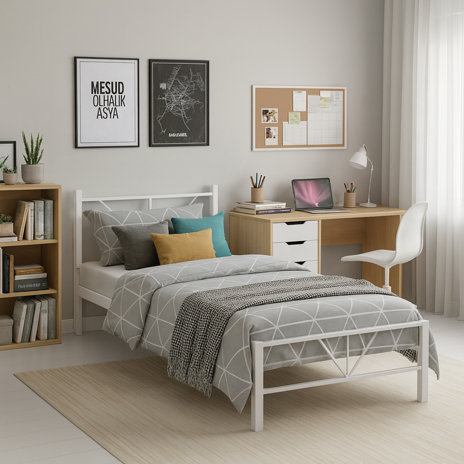 Alchera Tek Kişilik Metal Karyola (Ölçü & Renk Seçenekli)