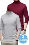 Uniquetrenders 2'Li Erkek Tüylenmeyen Boğazlı Triko Kazak Balıkçı Triko Kazak