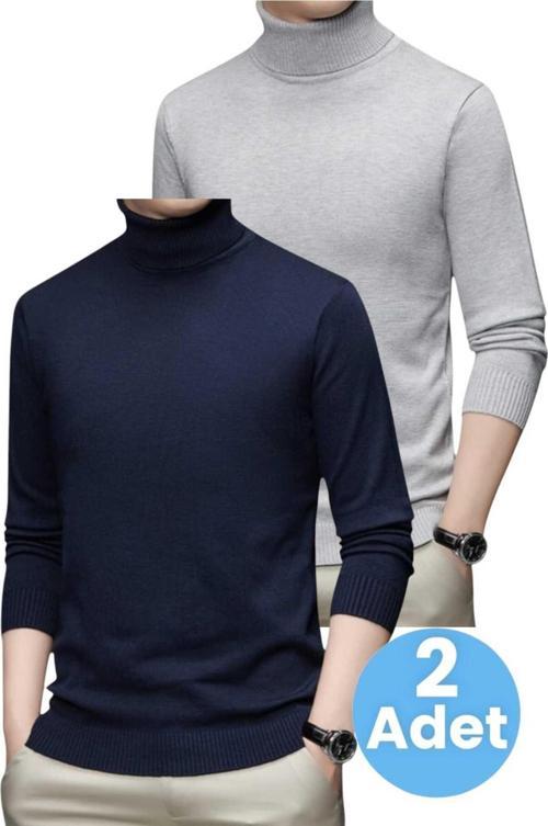 Uniquetrenders 2'Li Erkek Tüylenmeyen Boğazlı Triko Kazak Balıkçı Triko Kazak