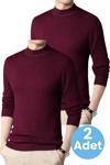 Uniquetrenders 2'Li Erkek Tüylenmeyen Yarım Boğazlı Triko Kazak Yarım Balıkçı Triko Kazak Bordo - Bordo 2XL
