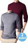 Uniquetrenders 2'Li Erkek Tüylenmeyen Yarım Boğazlı Triko Kazak Yarım Balıkçı Triko Kazak Füme - Bordo S