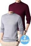 Uniquetrenders 2'Li Erkek Tüylenmeyen Yarım Boğazlı Triko Kazak Yarım Balıkçı Triko Kazak Gri - Bordo L