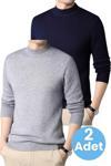 Uniquetrenders 2'Li Erkek Tüylenmeyen Yarım Boğazlı Triko Kazak Yarım Balıkçı Triko Kazak Gri - Lacivert L
