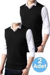 Uniquetrenders 2'Li Erkek V Yaka Triko Tüylenmez Süveter Erkek Slim Fit Süveter