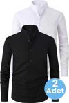 Uniquetrenders 2'Li Hakim Yaka Slim Fit Nefes Alan Kolay Ütülenen Dört Mevsim Erkek Gömlek Siyah - Beyaz S