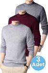 Uniquetrenders 3'Lü Erkek Tüylenmeyen Yarım Boğazlı Triko Kazak Yarım Balıkçı Triko Kazak