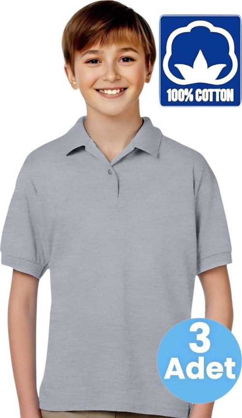 Uniquetrenders Erkek Çocuk 3'Lü %100 Pamuklu Polo Yaka T-Shirt Günlük Ve Okul Uniforma Okul T-Shirt Gri 13-14 Yaş