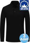 Uniquetrenders Erkek Çocuk 3'Lü Uzun Kol %100 Pamuklu Polo Yaka T-Shirt Günlük Ve Okul Uniforma Okul T-Shirt Siyah 6-7 Yaş