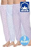 Uniquetrenders Kadın %100 Pamuklu Desenli Emprime Lastikli Uzun Pijama Lastik Paçalı Don 3'Lü Set