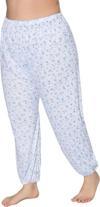 Uniquetrenders Kadın %100 Pamuklu Desenli Emprime Lastikli Uzun Pijama Lastik Paçalı Don 3'Lü Set Beyaz 3XL