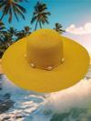 Kadın Geniş Siperli Deniz Kabuğu Detaylı Yazlık Hasır Şapka Sarı Standart