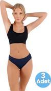 Uniquetrenders Kadın Pamuklu Penye Süprem Kumaş Bikini Külot Kadın Bikini Külot 3 Adet Lacivert L-XL