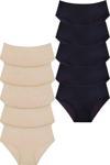 Uniquetrenders Kadın Yüksel Bel %100 Pamuklu 10'Lu Fitilli Bato Külot Kadın 10'Lu Külot Siyah - Ten 3XL