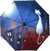 Uniquetrenders Kedi Desenli Canlı Lüx Renkli Baskılı Rüzgara Dayanıklı 8 Telli Katlanabilir Manuel Şemsiye Mavi