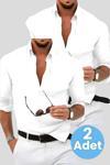 Uniquetrenders Slim Fit Kravatlık Uzun Kol Kolay Ütü Nefes Alan Dört Mevsim Slim Fit Erkek Gömlek 2'Li Set Beyaz - Beyaz 2XL