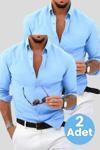 Uniquetrenders Slim Fit Kravatlık Uzun Kol Kolay Ütü Nefes Alan Dört Mevsim Slim Fit Erkek Gömlek 2'Li Set Mavi 2XL