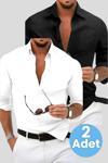 Uniquetrenders Slim Fit Kravatlık Uzun Kol Kolay Ütü Nefes Alan Dört Mevsim Slim Fit Erkek Gömlek 2'Li Set Siyah - Beyaz L