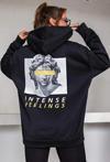 Go Veform Kapüşonlu Baskılı Üç İplik Kadın Sweatshirt Siyah ZN5026 - Image 1