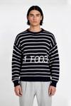 Ürün Özellikleri: Oversize kalıp, akrilik materyal, çizgili desen, bisiklet yaka, standart kol, triko kumaş, bej renk, cepsiz tasarım.