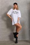 The Champ Clothing Kadın Granada Baskılı Beyaz Oversize T-Shirt