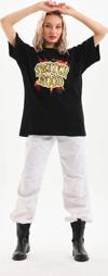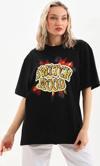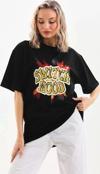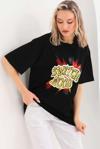 Unisex Baskılı Oversize T-Shirt - Siyah
