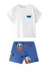 NSE Collection Unisex Bebek & Çocuk Donald Duck Baskılı Pamuklu Bisiklet Yaka Beyaz T-shirt ve Şort Alt Üst Takım
