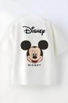 NSE Collection Unisex Bebek & Çocuk Mickey Mouse Baskılı Pamuklu Bisiklet Yaka Beyaz T-shirt ve Şort Alt Üst Takım