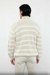 Ürün Özellikleri: Oversize kalıp, akrilik materyal, çizgili desen, balıkçı yaka, standart kol, triko kumaş, bej renk.