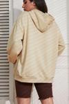 Go Veform Kapüşonlu Çizgili Kadın Sweatshirt Yeşil ZN5027 - Image 1