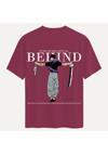 Soft Unisex Bisiklet Yaka %100 Organik Pamuklu Kalın Dokulu Behind Baskılı Oversize T-shirt - BORDO