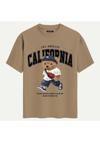 Soft Unisex Bisiklet Yaka %100 Organik Pamuklu Kalın Dokulu Behind California Oversize T-shirt - AÇIK KAHVERENGİ