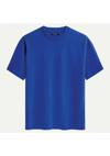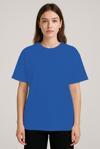 Soft Unisex Bisiklet Yaka %100 Organik Pamuklu Kalın Dokulu Düz Oversize T-shirt - SAKS MAVİSİ