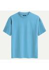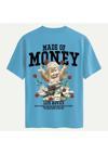 Soft Unisex Bisiklet Yaka %100 Organik Pamuklu Kalın Dokulu Made Of Money Baskılı Oversize T-shirt - MAVİ