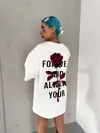 Lumiart Unisex Bisiklet Yaka Baskılı Oversize T-Shirt - Beyaz