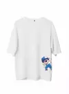 Unisex Bisiklet Yaka Baskılı Oversize T-Shirt - Beyaz