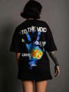 Unisex Bisiklet Yaka Baskılı Oversize T-Shirt - Siyah