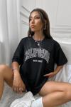 Defys Kadın Kısa Kollu Kayık Yaka Tişört Siyah