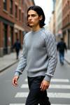 Ürün Özellikleri: Regular kalıp, akrilik polyester ve yün karışımı materyal, saç örgü desen, bisiklet yaka, standart kol, triko kumaş, gri renk.