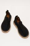 Gerçek Elişi Topuğu Açık Bilekten Bantlı 3cm Dolgu Topuk Siyah Keten Hasır Espadril Handmade - Image 1