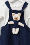 Unisex En Çizgi Fitilli Teddy Oyuncaklı 2'li Salopet